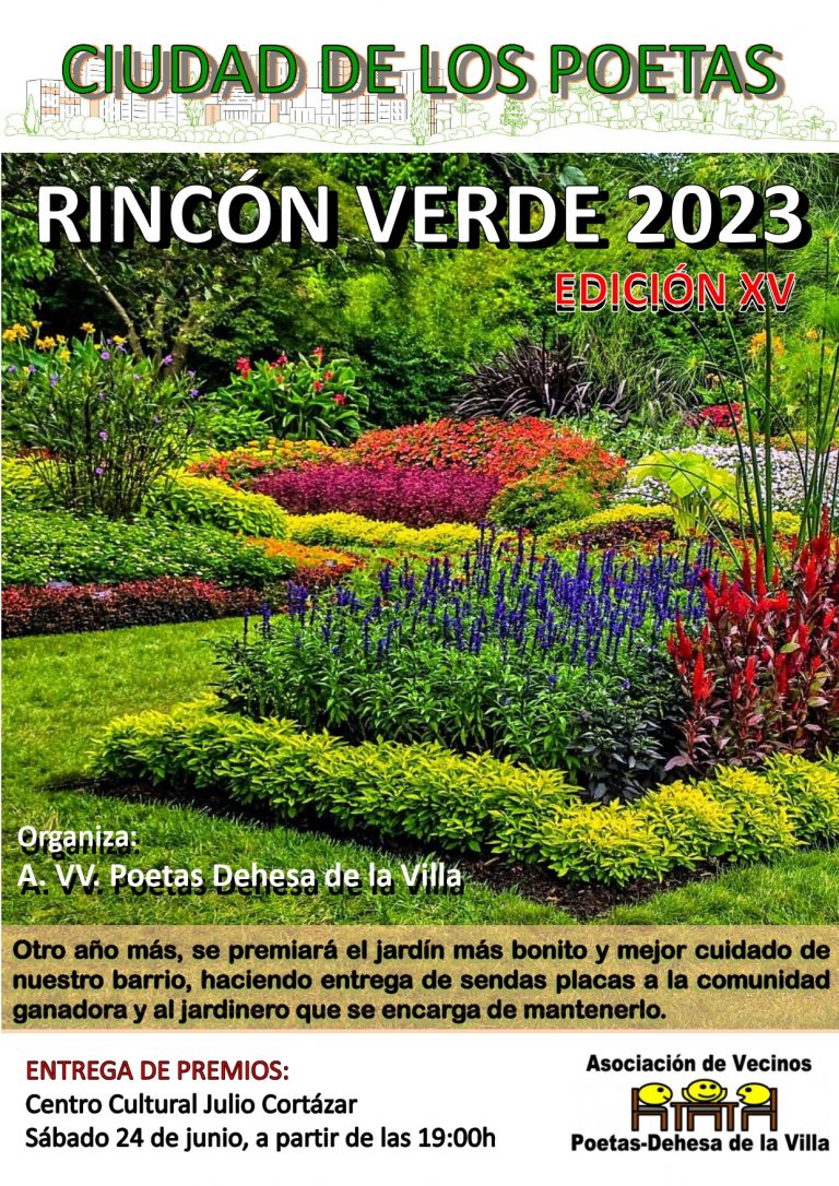 Como ya es tradición, durante las fiesta de nuestro barrio, las fiestas de San Juan, se entregará el premio al mejor Rincón Verde de la Ciudad de los Poetas.