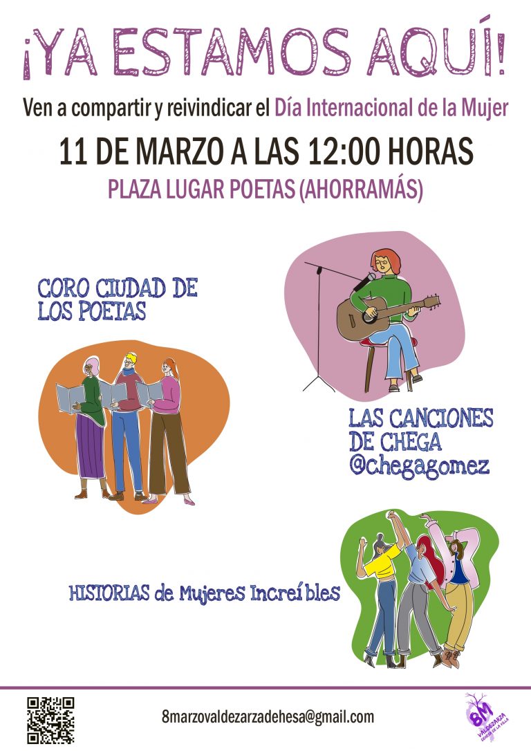 – Celebración del Día Internacional de la Mujer. En nuestro barrio lo haremos el 11 de marzo a las 12 horas en la plaza Lugar de los Poetas (detrás de Ahorramás).