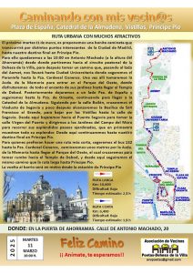 El martes 11 de marzo a las 10 horas en la puerta de Ahorramás de A. MACHADO.El próximo martes 8 de octubre, os proponemos una bonita caminata