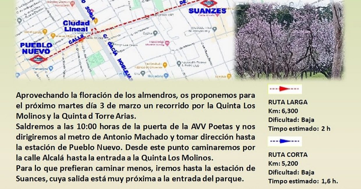Puedes bajarte el cartel del siguiente enlace: 2026-03-03 CAMINATA QUINTA DE LOS MOLINOS