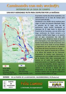 El próximo martes 18 de noviemble,, volveremos a la Casa de Campo para hacer una bonita ruta disfrutando de su entorno.