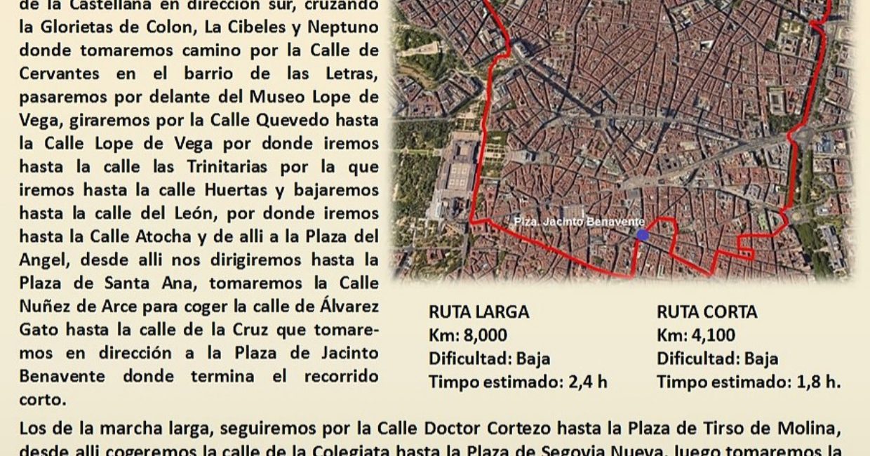 Iremos en metro a la estación de Gregorio Marañón. Aquí empezaremos la caminata, bajando por la Castellana al barrio de las Letras, Santa Ana a Jacinto Benavente. Aquí terminará la ruta corta.