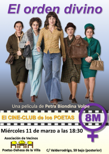 Con motivo del la proximidad al día Internacional de la Mujer, el próximo miércoles 11 de marzo a las 18:30 h, tendremos la oportunidad de ver en nuestro Cine-Club la película titulada “El orden divino”.
