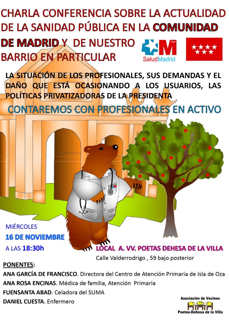 CHARLA-COLOQUIO SOBRE LA SANIDAD PÚBLICA EN MADRID Y EN NUESTRO BARRIO